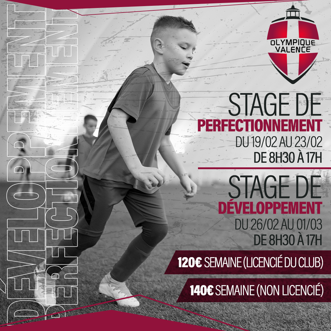Ces stages sont ouverts aux enfants, nés 𝐞𝐧𝐭𝐫𝐞 𝟐𝟎𝟏𝟖 (𝐔𝟔) 𝐞𝐭 𝟐𝟎𝟏𝟏 (𝐔𝟏𝟑), licenciés ou non à l’Olympique de Valence.